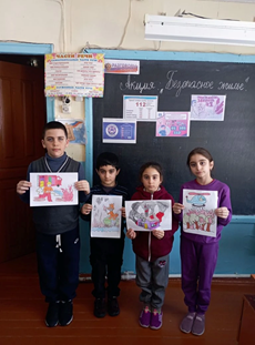 В течение акции был организован конкурс детского рисунка на противопожарную тематику. Ученикам раздали памятки «Правила пожарной безопасности в быту».