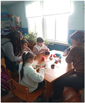 На кружке дети осваивают аппликацию с использованием различных материалов: салфеток, бумаги, ткани и ниток. На занятиях ребята развивают воображение, фантазию, внимание, память, трудолюбие.