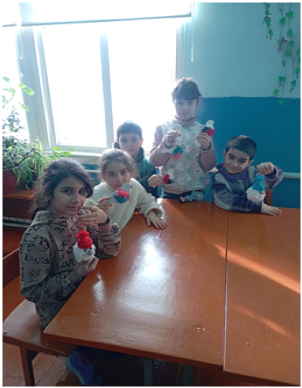 На кружке дети осваивают аппликацию с использованием различных материалов: салфеток, бумаги, ткани и ниток. На занятиях ребята развивают воображение, фантазию, внимание, память, трудолюбие.